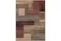 Enhance your living space with the 7'8"X10'8" Fiber Rug-Modern Red & Brown Blocks. This modern geometric rug features a striking combination of dark red, dark brown, camel, pear, charcoal, black, and tan colors. Its low pile design makes it perfect for indoor use, adding a touch of contemporary style to any room.
