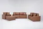 Transform your living room with the Alicia Saddle Brown Vegan Faux Leather 4 Piece 90" Sofa Loveseat Chair & Ottoman Set. This casual set, upholstered in faux leather, offers a perfect blend of comfort and style. The warm saddle brown color and durable 100% polyester material ensure long-lasting use while providing a cozy atmosphere.