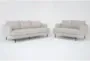 The Marques Cobblestone White Fabric 2 Piece Sofa & Loveseat Set is perfect for your living room. This mid-century modern set includes a sofa and loveseat, providing both style and comfort. The firm seating and solid hardwood construction ensure durability and support for everyday use.