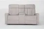 Experience ultimate relaxation with the Halo II Buff 71" Fabric Power Reclining Console Loveseat. Upholstered in soft fabric, this loveseat offers a firm comfort level perfect for lounging in your living room. With convenient features like a power headrest, storage console, and integrated cupholders, it combines functionality and comfort seamlessly.