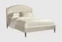 Crestley Beige Queen Curved Upholstered Fabric Wingback Shelter Bed | Adjustable Base Compatible