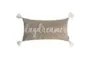 Introducing the 12X24 Cotton Waffle Daydreamer Pillow, a perfect addition to any farmhouse-inspired décor. This rectangular pillow features a soft taupe color and is made from a blend of polyester, cotton, and other fibers. Its oversized design and charming tassels make it an inviting piece for your couch or bed.