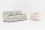 Transform your living room with the Hampstead II Linen Beige 97" Queen Sleeper Sofa and Dani Cream White Velvet Fabric Swivel Barrel Arm Chair. This set combines casual style with ultimate comfort, making it perfect for any home. The queen sleeper sofa offers ample seating during the day and easily converts into a cozy bed for guests at night.