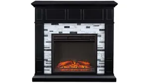 Upgrade your modern living space with this authentic marble Hadlee Fireplace. Glowing faux fire logs add ambiance with flickering LED flames and lifelike embers, with or without heat. Handsome woodwork complements a patternedmarble surround, blocking in your style. Add elegance and ambiance to your home office with this electric fireplace. <strong>Do not place TV on Mantel.</strong>