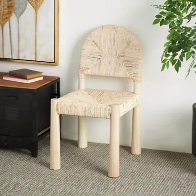 Kick back and relax as you wine down from a long hard day at work. A robust structure with eye catching design for comfortable seating anywhere in your home. Place this cream set of 2 side chairs in your living room, home office, or around the dining table for added natural warmth and an upscale modern aesthetic. This item ships in 1 carton. Due to the handmade nature of these, there will be slight color, shape, and size variations, as well as loose fibers. Suitable for indoor use only. This item ships fully assembled in one piece. Maximum weight limit is 200 lbs. Made in Indonesia. Can accommodate 1 person. This cream colored mahogany side chair comes as a set of 2. Bohemian style.