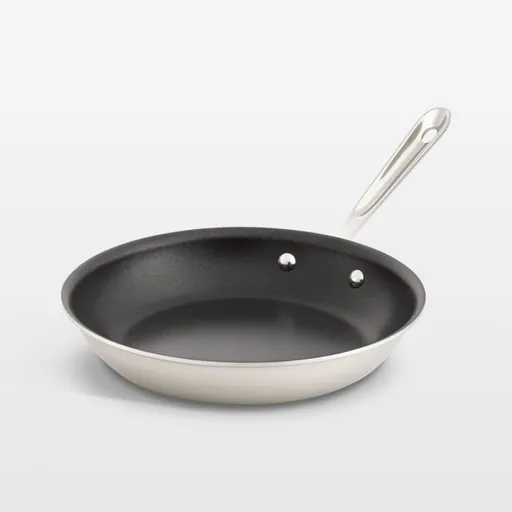 Offering maximum efficiency through modern technology, the d5 line from All-Clad bonds five distinct layers in a perfect harmony of cooking performance. The pan features a patented, three-layer aluminum and steel core that propels heat sideways, eliminating hot spots and driving through the entire pan, not just the base. Designed for cooking at higher heat with oil to create full flavor, color and crispy texture, the pan also feature three layers of PFOA-free nonstick coating to ensure effortless food release and easy cleanup. The pan is designed with flared sides for easy pouring and riveted stainless steel handles for comfortable maneuvering.