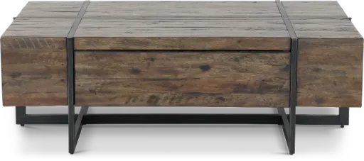 The dark bronze textured metal with the ceruse brown finish of the wood create a beautiful rustic coffee table. The Modern Timber collection lets you can enjoy the beauty of restoring something forgotten by nature and transforming it to become something versatile and everlasting for today's home. Beautiful solid wood that is rough sawn for durability and easy care, this table will become the centerpiece of your room. This piece also features a soft close drawer.