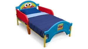 Brought to you by the letter E, this Sesame Street toddler bed by Delta Children features Elmo's friendly face at the headboard and footboard. Sturdy and built to help your child make the transition from a crib to a big kid bed, it's outfitted with two safety rails, rounded corners and sits low to the ground for your child to easily get in and out of bed on their own.