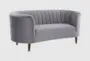 The Nicola Grey Velvet Loveseat is a stylish addition to any living room. Its curved shape and channel-tufted back provide a modern yet cozy feel. The soft grey velvet upholstery adds a touch of sophistication to your space.