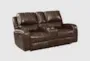 Relax in style with the Linton Dark Brown Leather 72" Manual Reclining Console Loveseat. Perfect for any living room, this casual loveseat combines comfort and functionality with its adjustable headrest, cupholders, and USB port. The genuine leather upholstery adds a timeless touch to your space.