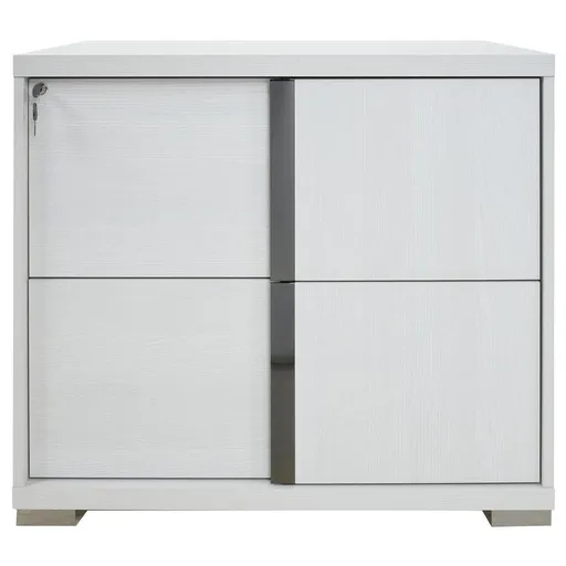 Lock away your files in style with the Tivo White Lateral File Cabinet. This modern file cabinet boasts a weathered appearance with engineered wood and melamine veneers, while the metal hardware features high gloss lacquer coating for a polished look. The perfect addition to your office or workspace, this Italian piece includes grip drawers for convenience and fully finished drawer interiors that fit legal and letter size paper.