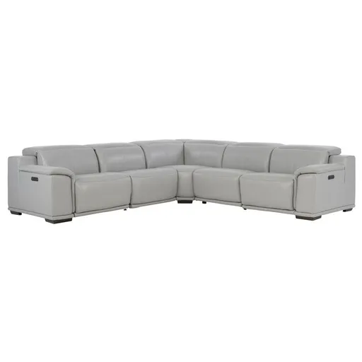 Get the comfort you and your family need with the Davis 2.0 Silver Leather Power Reclining Sectional. With genuine top grain leather where the body touches and high density foam, this leather power reclining sofa helps you relax after a long day with the armless, left, and right recliners all easily powered on with the push of button. Use the USB ports and you don't even have to get up to charge your phone.