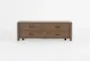 Designed and developed by Living Spaces to evoke a sense of craft and history, our Kai coffee table with wheels brings a handmade American-inspired aesthetic to your space. In addition to solid hardwood, this piece features knotty oak veneer with imperfections and characteristics that show the wood's natural beauty and wear for an authentic rustic look. Simple yet thoughtful, the design is made to intentionally reveal its construction. Drawers with no side panels, exposed joints and antiqued hardware all contribute to the unique charm, while wheels lend mobility. Shop coffee tables like this one and find the perfect design for your space.
