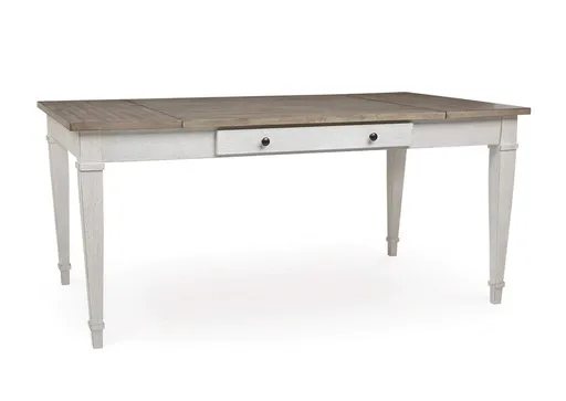 Set the scene for coastal chic or modern farmhouse living with the Skempton dining room table. Clean-lined, simply striking table doubles the charm with a brown tone top with plank effect, paired with a grayish white base with rub through effect for timeworn appeal. Multi-functional dining table features two convenient side drawers and a storage bin on each end for maximum use of space. Styled to comfortably seat six, this table makes room for one and all.