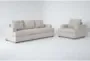 Introducing the Bonaterra Sand Beige Fabric 2 Piece Queen Memory Foam Sleeper Sofa Bed & Oversized Arm Chair Set with Loose Reversible Back. This casual set, designed for the living room, combines comfort and functionality with its 100% polyester fabric and durable alder wood frame. The sand beige color adds a touch of warmth and neutrality to any space, making it a versatile addition to your home.