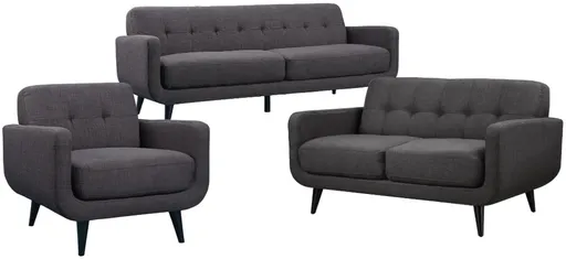 The Hadley 3-piece sofa set is where modern design meets vintage flair. This set comes with a sofa, loveseat and chair, making it the perfect trio for your living room. Perfect for relaxing in style, this stylish set features precise tufting on the back cushions.