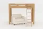 The Nora Natural Twin Wood Loft Bed with Calais III Linen Chair combines a cozy sleeping area with a comfortable seating option, making it an ideal choice for kids' rooms. This twin loft bed features a natural wood finish that adds a touch of warmth and simplicity to any space. The included linen chair provides a soft, inviting spot to relax or read beneath the sturdy loft.