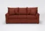 Introducing the Jaylen II Terracotta Fabric 88" Sofa, designed to bring comfort and style to your living room. This casual sofa features a loose reversible back, allowing for versatile seating arrangements and prolonged cushion life. Upholstered in 100% polyester fabric, it offers a soft yet durable seating experience.