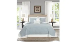 Add color to your traditional space with the Ashbury Bedspread Set. The soft blue is accented with large quilting in a medallion pattern while a large ivory border makes a statement on your bedding. Two decorative pillows complete this collection with embroidery and fabric manipulation ion corresponding colors to the top of bed.