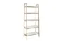 The Porter 73" Natural + White Open Bookcase is a versatile addition to any room. Its mid-century modern design and soft off-white and natural wood color make it a stylish choice for your hallway or workspace. This large, leaning ladderback bookcase provides ample storage with its quintuple-tier shelves.