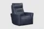 The Remmington Vintage Navy Power Swivel Glider Recliner offers comfort and style for your living room. Upholstered in vintage navy leather, this recliner features a smooth swivel motion and an adjustable headrest for personalized relaxation. Its classic design ensures it will be a timeless addition to your home.