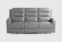 Experience the ultimate in relaxation with the Aragon Grey 77" Power Reclining Sofa. This casual-style sofa, upholstered in 100% vegan faux leather, offers both comfort and convenience with its motorized power recline and adjustable headrests. The high-density foams and pocket coil support system ensure a luxurious seating experience, while the integrated USB ports keep your devices charged and ready.