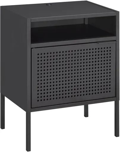 Sleek, bold, and effortlessly stylish, this gray nightstand adds modern edge to your bedroom. With clean lines, a rich black finish, and functional storage, it’s the perfect blend of form and function. Keep your essentials within reach while giving your space a dramatic, contemporary touch that never goes out of style.