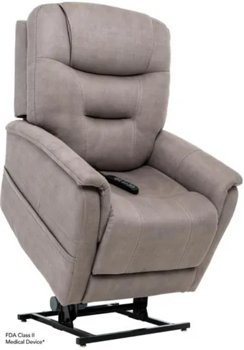 This iNFI Elite recliner is an FDA Class II Medical Device designed for personalized comfort and support. Featuring a two-motor recline and lift system with infinite positioning, it allows independent control of the back and seat. Adjustable headrest and lumbar zones provide customized relaxation and optimal lower back support at any angle.