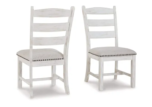 Whether you’re pining for cottage charm or modern farmhouse sophistication, the Valebeck dining room upholstered chair, with its timeless ladderback styling, is something to savor. The vintage white finish exudes a sense of ease that’s made all the more enticing thanks to a cushioned seat wrapped in a soothing gray linen colored textural fabric.