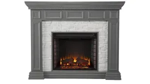 Create a cozy centerpiece in your living space with this faux stone Emerson Fireplace. Decorative woodwork on the mantel and base crafts a traditional feel in your family room or den, while a stacked faux stone surround adds classic texture. Flickering flames and glowing faux fire logs bring home a realistic fireplace look, working with or without heat for year-round enjoyment. Gather around for a cozy night in when you addthis freestanding electric fireplace to your small space or open concept floorplan. <strong>Do not place TV on Mantel.</strong>