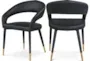 The Nena Black Vegan Leather Fabric Dining Chair With Gold Finish is a stylish addition to any dining room or kitchen. Combining modern design with high-quality materials, this chair offers both comfort and durability. The black vegan leather upholstery and gold-finished stainless steel legs provide a sophisticated touch to your space.