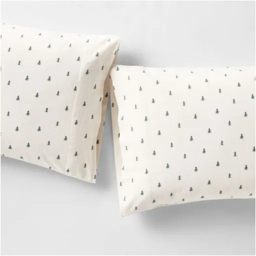 Dotted with tiny green pine trees, our off-white Cozysoft flannel sheets make a festive and irresistibly cozy bed. Organic cotton weaves brushed flannel bedding that's supersoft with a touch of texture. Perfect for snuggling on chilly nights, the ivory flannel sleeps extra-warm. This set of two pillowcases layers with the coordinating Cozysoft Spruce Green Trees sheets for cool-season pattern and comfort.