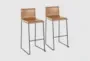 Elevate the style of your dining room with the Cara Black Steel and Carmel Faux Leather Bar Stool Set of 2. These modern bar stools feature armless design and are made of durable faux leather material, making them a comfortable and stylish addition to your space.