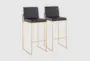 Enhance your dining room or kitchen with the Ian Black Performance Faux Leather High Back Gold Metal Steel 31" Barstool Set of 2. These modern barstools feature a sleek design that combines comfort and style, perfect for any contemporary space. The combination of gold steel and black faux leather offers a striking contrast that will elevate your decor.