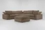 Introducing the Satori Camel Brown Natural Leather 5 Piece Modular L-Shaped Sectional, perfect for your living room. This sectional features three corners, two armless chairs, and an ottoman, providing ample seating and comfort. The reversible orientation allows for versatile placement in any space.