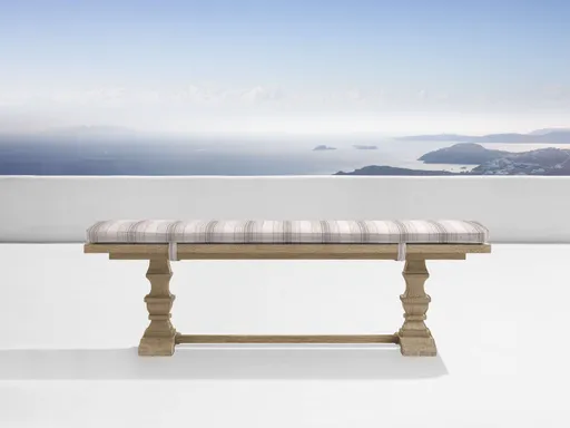 3. Hamptons Outdoor Dining Bench with Cushion in Weathered Fawn CHELSEA LINEN 66 WEATHERED FAWN
