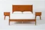 Upgrade your bedroom with the Alton Cherry II Queen Wood Platform Bed & Headboard 3 Piece Bedroom Set. This mid-century modern set, featuring solid rubberwood and okoume veneers, brings a warm cherry hue to your sleeping space. The set includes a queen platform bed with matching headboard and two night tables, all designed with tapered legs for a sleek, retro look.