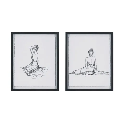 Feminine Figures Sketch Framed Glass Art 2 Pc Set