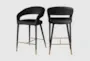 Elevate your dining or kitchen space with the Nena Black Velvet Upholstered Counterstool with Gold Finish. Designed in a modern style, this counter stool features luxurious black velvet upholstery and a striking gold finish on the legs. Perfectly combining comfort and sophistication, it includes supportive arms and a tall, sturdy construction.