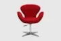 Introduce a pop of color to your living room with the Raspberry Red Adjustable Swivel Accent Chair. Designed in a modern style, this chair features a vivid red fabric and polished chrome base that will elevate any space. The wool blend fabric ensures comfort while the adjustable swivel mechanism offers versatility and ease of use.