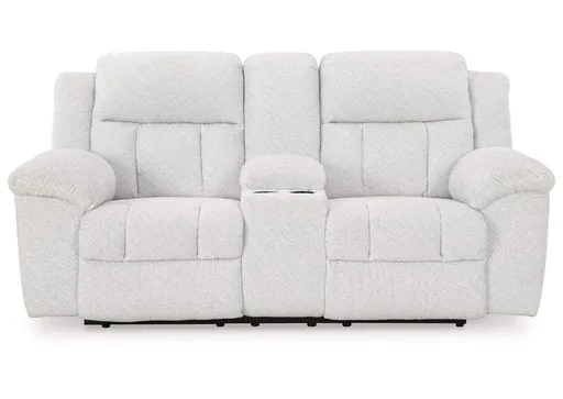 austere reclining loveseat with console