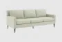The Luna Stone Grey 88" Fabric Sofa is a perfect blend of modern and mid-century modern styles, offering a chic addition to any living space. Its grey polyester fabric provides a soft and durable seating experience, while the wooden legs add a touch of retro charm. This sofa is designed with arms for added comfort and support.