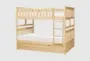 The Kory Natural Full Over Full Wood Bunk Bed with Trundle is a perfect blend of traditional style and practical design. Crafted from natural pine, this bunk bed features a sturdy ladder leading to the top bunk, which is equipped with guard rails for added safety. The pull-out trundle bed with casters provides an extra sleeping space, making it ideal for sleepovers or accommodating guests.