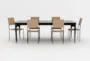 The Austen Black 72-90" Extendable Dining Table + Rattan Side Chair Set for 6 is a perfect addition to your dining room or kitchen. This traditional set features a sleek black wood table with a rectangular shape and extending capabilities, making it ideal for both everyday meals and special gatherings. The rattan side chairs add a touch of natural charm, complementing the table's sophisticated design.