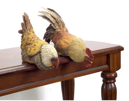 You will love the farmhouse vibes this sitting hen and rooster bring into your home. They are beautifully created to look as lifelike as possible, and the colors are exquisite as well as the texture. Sit them on a table, or mantle and surround them with your other favorite farmhouse décor.