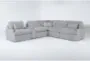 The Jolene Silver Grey 134" 6 Piece L-Shaped Modular Sectional with Console Storage Cupholders & USB is a perfect addition to your modern living room. Designed with comfort and convenience in mind, this sectional offers deep seating and cloud-like softness. The reversible orientation allows for versatile placement, while the console provides practical storage and USB power outlets.