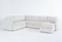 Enhance your living room with the Basil Porcelain White Ivory Fabric Modular 125" 4 Piece U-Shaped Sectional with Right Arm Facing Chaise. This modern sectional offers a perfect blend of comfort and style, featuring track arms and a spacious U-shaped design. The fabric upholstery in a soft porcelain hue adds a touch of sophistication to any space.