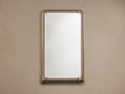 Playing with negative space and an industrial-inspired aesthetic, our Liam Mirror Collection features brass-finished stainless-steel frames surrounding beveled mirrors for a unique, yet functional allure.