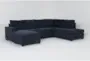 Enhance your living room with the Bonaterra Midnight Navy Blue Fabric 127" 2 Piece U-Shaped Sectional with Left Arm Facing Sofa Chaise & Right Arm Facing Corner Chaise. This casual U-shaped sectional is upholstered in 100% polyester fabric, providing a comfortable and durable seating option for your home. Designed with track arms and tapered legs, it offers both style and functionality.