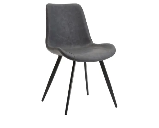 Elevate your dining space with the Astaire Dining Chair. Modern design meets comfort with mottled gray faux leather & sleek black metal legs.